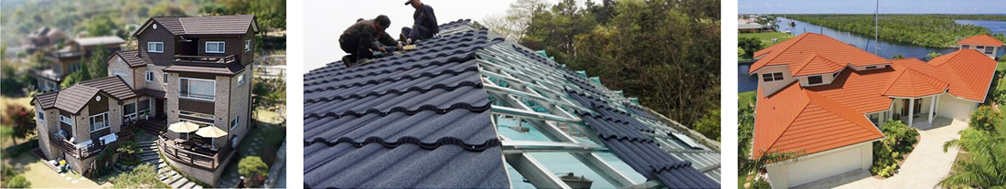 彩石金屬瓦適用于各類坡屋頂建筑的屋面鋪裝和各類建筑的局部裝飾,特別是適用于別墅、中高檔住宅、大型商場圖書館博物館和學校醫(yī)院政府機關和企事業(yè)單位辦公樓,也非常適用于平改坡和舊屋面翻新。